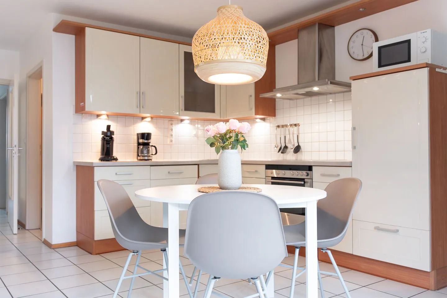 Ostseeallee 8, 60 m², Erdgeschoss, Terrasse, Wohnzimmer mit Essecke, Radio / CD, Flachbildschirm Smart TV, DVD-Player, WLAN, integrierte Einbauküche, Backofen, Mikrowelle, Spülmaschine, Schlafzimmer mit Doppelbett und Flachbildschirm, zweites Schlafzimmer mit Etagenbett, Wohnung ist komplett gefliest, Wannenbad / WC, Tiefgaragenstellplatz für alle Fahrzeuge (Durchfahrtshöhe 1,90 m), Fahrradkeller, Trockenraum, zwei Hunde erlaubt (je 12,50 €/ pro Nacht), Bettwäsche und Handtücher bitte mitbringen oder spätestens zwei Tage vor Anreise gegen Gebühr bestellen.