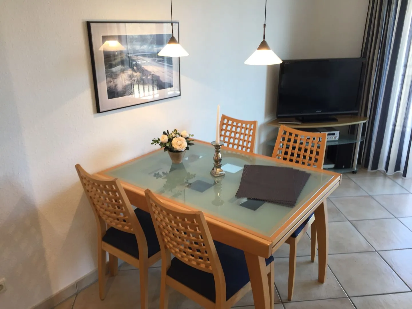Sehr schön gelegen. Seitlicher Meerblick auch vom Wohnzimmer. Sauberes und gepflegtes Appartement mit sehr guter Musikanlage im Wohnzimmer.