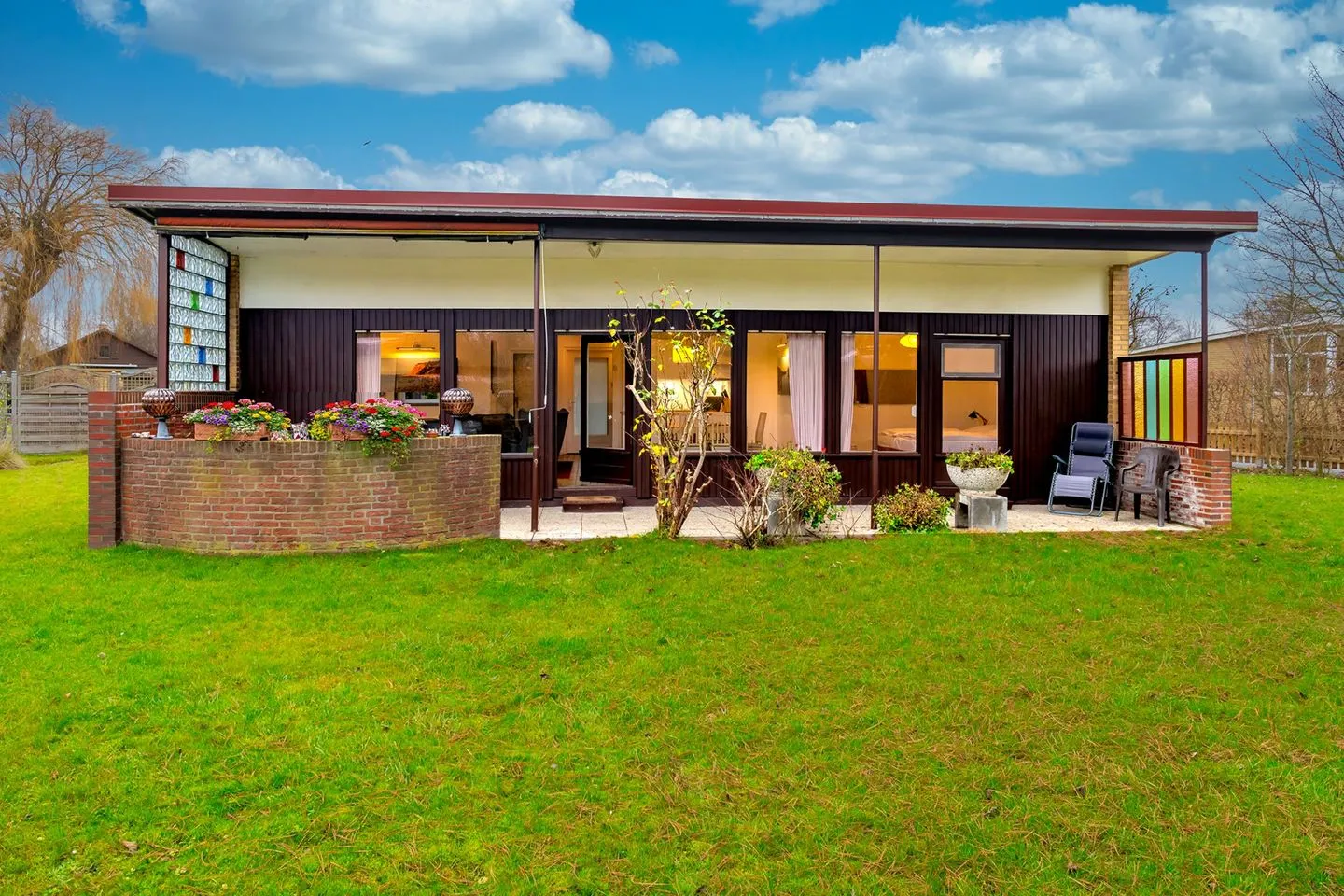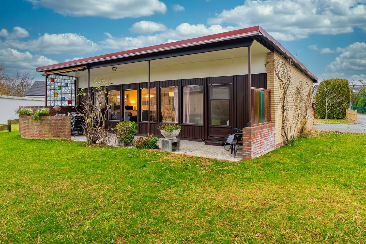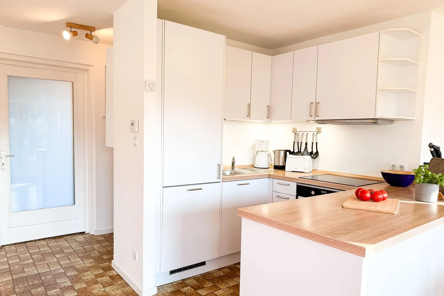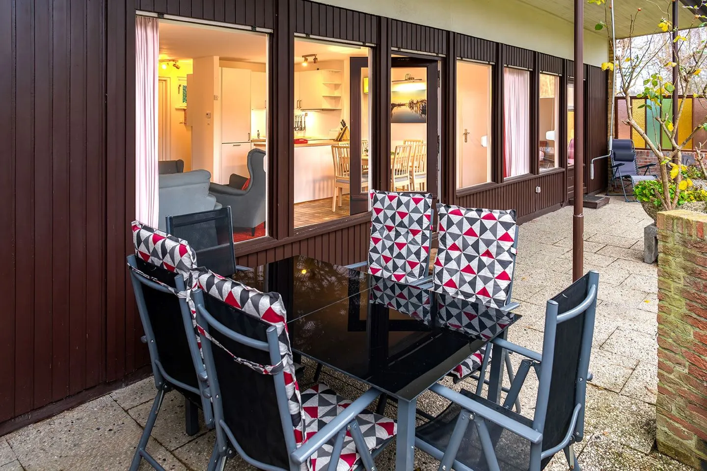 Highlight ist die überdachte Terrasse mit Garten, Gartenmöbeln und Sonnenliegen – ideal zum Entspannen. Badezimmer mit Dusche/Wanne, Waschmaschine und guter Ausstattung. Babybett und Hochstuhl vorhanden.